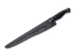 Kaum ein anderer Messermacher hat das Feld der taktischen Einsatzmesser so sehr geprägt wie William H. „Bill“ Harsey, seine Entwürfe haben ihm einen ausgezeichneten Ruf in der Messerwelt eingebracht. Die von ihm entworfene Modifikation des legendären Böker Applegate-Fairbairn verbindet das von vielen Eliteeinheiten im Einsatz genutze Messer mit modernen Elementen. Die größere Klingenbreite und die günstigere Geometrie der beidseitig geschliffenen Klinge aus 154CM verbessern die Schneideigenschaften, während die Klingenlänge einen optimalen Kompromiss aus Führigkeit und Nutzwert bietet. Die Klinge ist mit einem robusten Stonewash-Finish versehen. Der am Griffende hervorstehende Klingenerl kann unter anderem als Glasbrecher eingesetzt werden. Die CNC-gefrästen Griffschalen aus schwarzem Canvas-Micarta sind äußerst belastbar, angenehm strukturiert und bieten selbst bei Feuchtigkeit hervorragenden Grip. Lieferung mit schwarzer Lederscheide.
