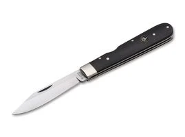 Böker 1906 Taschenmesser 113024Manche Dinge unterliegen stark der Mode und verschwinden zu Recht im Dunkel der Geschichte. Andere wiederum sind viel zu schön, und zu schade, um dauerhaft verschwunden zu bleiben. So geht es uns mit dem klassischen Böker 1906. Die klare Linienführung dieses über ein Jahrhundert alten Entwurfes begeistert uns auch heute noch, und so haben wir keine Mühen gescheut, das Modell 1906 wieder ins Leben zu rufen. Da weder alte Werkzeuge noch alte Muster oder technische Zeichnungen existiert haben, mussten wir bei Null anfangen und das Messer von Grund auf neu entwickeln, wobei wir uns aber durchgehend an traditionellen Techniken orientiert haben. So ist ein sehr charismatisches Taschenmesser neu entstanden, welches das Flair der Jahrhundertwende verströmt und nicht trotz, sondern gerade wegen seiner Geradlinigkeit und mit dem sehr typischen Klingenschliff eine ganz besondere Erscheinung ist. Ganz klassisch sind die Platinen aus Messing gefertigt, während die Backen aus Neusilber bestehen. Die Klinge wird aus 440C gefertigt und verriegelt per Rückenfeder. Ebenholz-Griffschalen setzen zudem einen edlen Akzent.Technische DatenGesamtlänge: 19,5 cmKlingenlänge: 8,9 cmKlingenstärke: 3,5 mmGewicht: 130 GrammKlingenmaterial: 440CGriffmaterial: EbenholzVerschlussart: Backlock