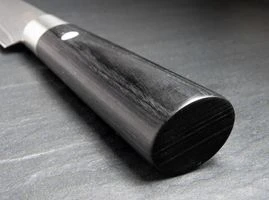 Böker Damast Black SchinkenmesserDie Kochmesser-Serie Böker Damast Black verbindet traditionell japanische Griffformen aus schwarzem Schichtholz mit rasiermesserscharfen Klingen aus rostfreiem Damast mit 37 Lagen Stahl, die sich durch eine wunderschöne Maserung auszeichnen. Der extrem schnitthaltige Kern der Damastklinge besteht aus dem Hochleistungsstahl VG-10. Die spürbare Schärfe beim Schneiden ist atemberaubend und lässt das Kochen zum Erlebnis werden. Die japanische Bauweise des Messergriffs mit den fein mattierten Edelstahlzwingen gibt der Serie ihren besonderen Charakter. Nicht nur viele Spitzenköche schwören auf japanische Küchenmesser – auch bei ambitionierten Hobbyköchen werden sie immer beliebter. Die Vorzüge der Messer mit japanischen Griffen und dem traditionellen Aufbau aus Klinge mit Steckerl und Edelstahlzwinge liegen hierbei auf der Hand, denn empfindliche Lebensmittel lassen sich besonders schonend zerteilen und zubereiten. Beim Schneiden von Kräutern treten beispielsweise durch den sehr feinen Schnitt kaum ätherische Öle aus. Aromastoffe gehen so nicht verloren, und das unerwünschte Tränen der Augen beim Zwiebelschneiden kann ebenfalls vermieden werden. Die gefühlte Schärfe beim Schneiden ist atemberaubend und lässt das Kochen zum Erlebnis werden. Das Geheimnis der ungewöhnlichen Schärfe liegt im Material und dessen Bearbeitung. Die Klinge besteht aus 37 Lagen Damaststahl. Der rostträge Premium-Klingenstahl VG-10 der mittleren Schneidlage wird in Japan hergestellt und zeichnet sich durch einen hohen Härtegrad, Zähigkeit und eine homogene kristalline Struktur aus. Im direkten Vergleich der Schneidleistung mit einem Produkt eines etablierten Solinger Küchenmesserherstellers gemäß der DIN EN ISO 8442-5 schneiden die Messer nicht nur sprichwörtlich besser ab. Die Schneidleistung liegt im repräsentativen DIN-Test mehr als 68 % über der des Wettbewerbsproduktes. Zusätzlich überzeugen die Serie Böker Damast Black durch eine höhere Anfangsschärfe. Ständiges Nachschärfen gehört damit der Vergangenheit an. Das Schinkenmesser ist mit seiner langen und schlanken Form bestens zum präzisen Schneiden von Fleisch und Fisch geeignet. Hauchfeine Scheiben lassen sich damit genauso einfach schneiden wie Würfel oder gleichmäßig starke Tranchen. Das Schinkenmesser ist etwas flexibler als andere Messer und gleitet optimal durch das Fleisch.Technische DatenGesamtlänge: 35,4 cmKlingenlänge: 22,9 cmKlingenstärke: 2,6 mmGewicht: 136 GrammKlingenmaterial: DamastGriffmaterial: Schichtholz