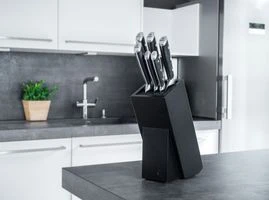 Böker Forge Set 2.0Die Kochmesser-Serie Böker Forge verbindet innovative und dynamische Formgebung mit klassischer Materialauswahl in Premiumqualität. Auffallend ist die attraktive Linienführung, die die Messer deutlich von der Masse der herkömmlichen Küchenmesser abhebt, ohne zu exzentrisch zu wirken. Darüber hinaus überzeugt die Serie Böker Forge mit einem ausgesprochen attraktiven Preis-Leistungs-Verhältnis. Die aus dem Chrom-Molybdän-Vanadium Edelstahl X50CrMoV15 gefertigten Messer sind optimal ausbalanciert und liegen durch die ergonomische Griffgestaltung perfekt in der Hand. Schwarze Griffschalen aus hochwertigem Spezialkunststoff werden klassisch mit drei Edelstahlnieten dauerhaft und ohne Fugen mit dem vollständig durchgehendem Messererl verbunden. Die Gestaltung der Klingen samt Übergang zum Kropf erlaubt ein problemloses Nachschärfen und gewährleistet in Kombination mit der richtigen Pflege eine langfristig perfekte Funktion der Messer. Bitte reinigen Sie die Messer nur per Handwäsche und nicht in der Spülmaschine. Darüber hinaus überzeugt die Serie Böker Forge mit einem ausgesprochen attraktiven Preis-Leistungs-Verhältnis. Die Auslieferung der Messer erfolgt in einer hochwertigen Geschenkverpackung. Bestückter Böker Messerblock Forge mit sechs Messern der Serie Böker Forge: Spickmesser, Universalmesser, Schinkenmesser, Santoku, Chefmesser, Brotmesser.Technische Daten4560Klingenmaterial: X50CrMoV15Griffmaterial: ABS