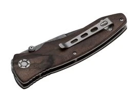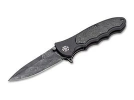Auf vielfachen Wunsch unserer Kunden haben wir das Böker Leopard-Damast III Collection mit Flipper und Daumenpin neu aufgelegt. Das Sammlermesser wird mit einer Griffeinlage aus rostfreiem, 180-lagigem Damast veredelt, die kunstvoll von Hand in die Griffschale eingepasst wird. Das Taschenmesser erhält so eine völlig neue Ausstrahlung, da die Damasteinlage mit ihrem edlen Muster hervorragend mit der handgeschmiedeten Klinge aus Leopard-Damast harmonisiert. Der legendäre Klingenstahl von Böker, der die Messerszene weltweit seit vielen Jahren begeistert, wird aus dem Kanonenrohrstahl des Kampfpanzers Leopard gefertigt, besteht aus 300 Lagen und hat eine Härte von 61 bis 63 HRC. Mit umsetzbarem (Tip-up/Tip-down). Lieferung im Rahmenetui, mit Echtheitszertifikat und individueller Seriennummer.