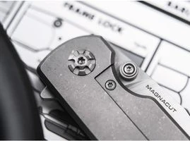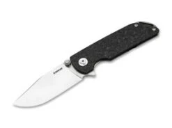 Böker Manufaktur Solingen Sherman EDCDer große Erfolg des Böker M4 Sherman Damast, der neben der Geschichte des historischen Damast-Stahles auch auf das Design des modernen Folders zurückzuführen ist, hat uns dazu veranlasst auf dieser Basis ein führiges und gefälliges EDC mit Titan-Framelock auf den Weg zu bringen, welches trotz pulvermetallurgischer Klinge ebenfalls ein echtes Stück M4 Sherman Damast in sich trägt. Bei der Klinge des Sherman EDC verarbeiten wir zum ersten Mal Magnacut, der nicht zu Unrecht als „Wunderstahl“ gefeiert wird. Dieser Stahl wurde – anders als die üblicherweise verwendeten Werkzeugstähle – speziell für den Messerbau entwickelt. Die drei wünschenswerten Eigenschaften eines Stahles Schnitthaltigkeit, Zähigkeit und Rostträgheit (rostfrei in Kategorie der DIN) stellen einen Zielkonflikt dar. Um den Stahl rostträge zu bekommen ist der Zusatz von Chrom erforderlich, der das Gefüge unter normalen Bedingungen grob, spröde und bruchanfällig macht. Hohe Härte, die die Schnitthaltigkeit positiv beeinflusst geht i.d.R. zu Lasten der Zähigkeit. Beim Magnacut ist es gelungen trotz des hohen Chromgehaltes von 10,7% und einer beeindruckenden Härtbarkeit von über 62HRC ein sehr feines Gefüge und damit hohe Zähigkeit und Schocklastverträglichkeit zu erzielen. Eine zentrale Rolle spielt hierbei der Zusatz von Stickstoff. Stickstoff ist eigentlich ein Stahlschädling in der Legierung. Unter anderem durch eine ausgeklügelte Wärmebehandlung wird der Stickstoff des Magnacut jedoch in die kristalline Gitterstruktur des Stahlgefüges eingebunden und erreicht so die sich andernfalls wiedersprechenden Werkstoffeigenschaften. Der zentrale bauliche Unterschied zum M4-Damast-Modell ist der elegant in die Linienführung integrierte Flipper, der die Klinge mit kleinem Impuls weich aufgleiten lässt und zum Spielen einlädt. Die kugelgelagerte Klinge wird alternativ per Daumenpin geöffnet und von einem stabilen Titan-Framelock mit Stonewash-Finish arretiert, ein Overdrive-Stop fungiert als Überdehnschutz für die Verriegelung. Der gefrästem Titan-Clip (Tip-up/r) mit Stahlkugel sowie die Griffschalen aus wilder Kohlefaser vervollständigen das stimmige Gesamtbild. Ein besonderes Highlight des Böker Sherman EDC bildet der überstehende Backspacer aus Damast, der mit einem Lanyard-Hole in Langlochausführung ausgestattet ist. Der Damast des Backspacers wurde aus verschiedenen Materialien aus der Produktion von M4 Sherman-Panzern von Chad Nichols im Muster Customized Ladder geschmiedet und erinnert an die Panzerspuren, die von den schweren Ketten des M4 Sherman im Boden zurückbleiben. Technische DatenGesamtlänge: 17,8 cmKlingenlänge: 7,5 cmKlingenstärke: 3 mmGewicht: 95 GrammKlingenmaterial: MagnaCutGriffmaterial: KohlenstoffstahlVerschluss: FramelockÖffnungshilfe: DaumenpinFarbe: SchwarzKlingenfarbe: Unbeschichtet