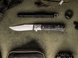 Böker Manufaktur Solingen TRPPR MicartaDiskret im Namen – souverän im Auftritt. Das Böker TRPPR (gesprochen: Trapper) ist ein außergewöhnliches Gentleman Messer, das den Geist des erfolgreichen Böker Trapper in eine neue Zeit überträgt. Wenngleich auf das Wesentliche reduziert, lässt das Taschenmesser an nichts vermissen. Die kugelgelagerte Klinge aus pulvermetallurgischem MagnaCut (62-63 HRC) öffnet seidenweich per Flipper, während der elegante Integral-Framelock mit Overtravel-Stop das Messer zuverlässig sichert. Der verwendete Klingenstahl zeichnet sich vor allem durch eine hohe Verschleißfestigkeit, einer hohen Zähigkeit sowie einer hohen Korrosionsbeständigkeit aus und wird durch ein attraktives Two Tone Finish abgerundet. Die lange Backe des Titangriffkörpers interpretiert den nostalgischen Zeitgeist neu und formt das TRPPR mit seinen Griffschalen aus grünem Micarta zu einem neuen Leitbild zeitgenössischer Messerkultur. Dekorative Akzente setzen die vordere Klingenachsschraube, bei der das berühmte Böker Baumzeichen verwendet wird, und der aus dem Vollen gefräste Titanclip (Tip-Up/r) mit Kugel. Die Auslieferung des Böker TRPPR Micarta erfolgt in einemhochwertigen Filzetui. Handgefertigt in der Böker Manufaktur Solingen.Technische DatenGesamtlänge: 18,9 cmKlingenlänge: 8,2 cmKlingenstärke: 2,4 mmGewicht: 70 GrammKlingenmaterial: MagnaCutGriffmaterial: MicartaVerschluss: FramelockÖffnungshilfe: FlipperÖffnungsmechanismus: ManuellFarbe: GrünKlingenfarbe: Unbeschichtet