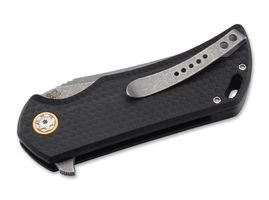Böker Plus GolemDas eindrucksvolle Böker Plus Golem ist trotz seiner überaus stabilen Bauweise vergleichsweise leicht und überzeugt sowohl im Alltag als auch im härteren Einsatz. Die wabenförmig texturierten Griffschalen und der CNC-gefräste Spacer bestehen aus G10, der Liner ist zusätzlich mit gewichtsreduzierenden Aussparungen versehen. Die mit einer ausgeprägten Fehlschärfe ausgestattete Stonewash-Klinge aus D2 öffnet kugelgelagert per Flipper und wird von einem zuverlässigen Linerlock gesichert. Riffelungen im Bereich der Daumenauflage erhöhen die Arbeitssicherheit zusätzlich. Ein dekorativer Messing-Ring um die Klingenachsschraube setzt einen farblichen Akzent. Mit Fangriemenöse, Deep-Carry-Clip (Tip-up/r) und hochwertigem Nylon-Etui zur Aufbewahrung.Technische DatenGesamtlänge: 20,5 cmKlingenlänge: 8,9 cmKlingenstärke: 4 mmGewicht: 148 GrammKlingenmaterial: D2Griffmaterial: G10Verschluss: LinerlockÖffnungshilfe: FlipperÖffnungsmechanismus: ManuellFarbe: GrauKlingenfarbe: Grau