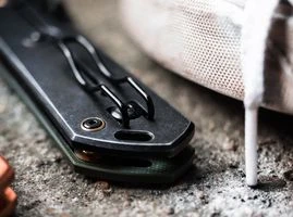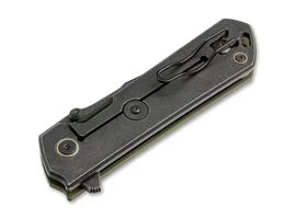 Böker Plus Kihon Assisted OD GrünMit dem Entwurf des Böker Plus Kihon Assisted OD Green verkörpert der amerikanische Custom-Messermacher Lucas Burnley die Idee des japanischen Kihon (). Der Begriff umfasst ursprünglich die Grundlagen und Basistechniken japanischer Kampfkünste, die Burnley im soliden Alltagsmesser bodenständig umsetzt. Ausstattung und das geradlinige Design zeugen von einer hohen Praxistauglichkeit und verleihen dem Messer eine ideale Basis für die alltäglichen Schneidarbeiten. Die kugelgelagerte Harpoon-Klinge aus D2 ist mit einem dunklen Stonewash-Finish versehen und öffnet federunterstützt per Flipper oder Daumenpin. Der ebenfalls mit einem dunklen Stonewash-Finish versehene Edelstahl-Framelock sichert die Klinge zuverlässig und ist zudem mit einem Hinderer Lock-Stop ausgestattet. Der rutschsichere Griff ist auf der Vorderseite mit texturiertem G10 beschalt und liegt angenehm in der Hand. Goldfarben anodisierte Ringe um die Klingenachsschraube und die Griffschraube setzten dekorative Akzente. Mit Fangriemenöse, Clip (Tip-up/r), und hochwertigem Nylon-Etui zur Aufbewahrung.Technische DatenGesamtlänge: 19,9 cmKlingenlänge: 8,5 cmKlingenstärke: 3,5 mmGewicht: 124 Gramm249Klingenmaterial: D2Griffmaterial: G10Designer: Lucas BurnleyVerschluss: FramelockÖffnungshilfe: FlipperÖffnungsmechanismus: FederunterstütztKlingenfarbe: UnbeschichtetLumen: Öffnungshilfe: FlipperÖffnungsmechanismus: FederunterstütztKlingenfarbe: Unbeschichtet
