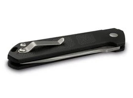 Das von Lucas Burnley entworfene Böker Plus Kihon Auto ist ein überaus robustes und gleichzeitig preisgünstiges Automatikmesser für Einsatz und Alltag. Der amerikanische Messermacher kombiniert auch beim Kihon geschickt japanische Designelemente mit taktischen Elementen. Das Taschenmesser ist mit einer Stonewash-Klinge aus AUS-8 ausgestattet, die an ein klassisches japanisches Schwert erinnert und per Druckknopf geöffnet wird. Die schwarzen Griffschalen bestehen aus leichtgewichtigem Aluminium und sind mit texturierten Flächen versehen. Mit Fangriemenöse und kurzem Clip (Tip-up).