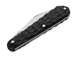 Böker Plus KoteykaDem ukrainischen Messermacher Alexander Krava gelingt es in seinen Entwürfen vortrefflich, Form und Funktion auf höchstem Niveau zu vereinen. Angelehnt an Koteyka, einem unter Kennern der Computerszene nicht ganz ernst gemeinter Virus mit einer Katze als Gallionsfigur, entwarf der Designer das gleichnamige Slipjoint-Messer. Dreidimensional gefräste G10 Griffschalen sorgen mit samtpfotiger Tatzen-Struktur bis zum Klingenrücken für unvergleichlichen Halt, während die D2 Klinge mit Stonewash-Finish in Lauerstellung liegt und erst mit einem leisen Schnurren des Nagelhaus auf ihre Beute aus alltäglichen Schneidarbeiten losgelassen wird. Auch ohne Verriegelungsmechanismus wird die Klinge sicher von der straffen Feder gehalten. Ohne Clip und ohne Fangriemenöse, dafür mit viel geheimnisvoller Eleganz.Technische DatenGesamtlänge: 15,8 cmKlingenlänge: 6,6 cmKlingenstärke: 2,7 mmGewicht: 49 GrammKlingenmaterial: D2Griffmaterial: G10Designer: Alexander KravaVerschluss: SlipjointÖffnungshilfe: NagelhauÖffnungsmechanismus: ManuellFarbe: SchwarzKlingenfarbe: Unbeschichtet