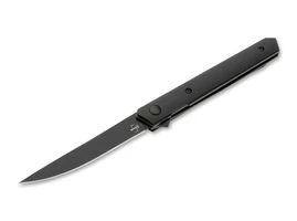 Böker Plus Kwaiken Air Mini G10 All Black Die schlanke Bauart und die exklusive Materialwahl machen das Böker Plus Kwaiken Air zu einem edlen Crossover zwischen Gentleman-Folder und Einsatzmesser. Um diesen Brückenschlag noch leichter zu vollziehen, bietet das Kwaiken Air Mini bei deutlich reduzierten und damit taschentauglicheren Abmaßen die gleichen herausragenden Qualitäten wie der große Bruder. Mit seiner geradlinigen und praktischen Form ist das moderne Taschenmesser mittlerweile zu einer wahren Ikone geworden. Die sauberen Linien und das schlanke Design wurden bei der Leichtbauvariante nochmals auf eine kompromisslose Gewichtsreduktion hin optimiert, obwohl das Messer im geschlossenen Zustand weiterhin die komplette Klinge aufnimmt. Der Flipper sorgt für eine intuitive Bedienung und zusätzliche Sicherheit, während der Linerlock die kugelgelagerte Klinge aus schwarz beschichtetem VG-10 sicher arretiert. Unterstrichen wird die Leichtfüßigkeit des Gentleman-Folders durch die Griffschalen aus widerstandsfähigem G10, die dem komplett schwarzen Messer eine taktische Anmutung verleihen. Mit Fangriemenöse, demontierbarem Deep-Carry-Clip (Tip-up/r) und hochwertigem Nylon-Etui zur Aufbewahrung.Technische DatenGesamtlänge: 18,3 cmKlingenlänge: 7,8 cmKlingenstärke: 2,6 mmGewicht: 59 GrammKlingenmaterial: VG-10Griffmaterial: G10Designer: Lucas BurnleyVerschluss: LinerlockÖffnungshilfe: FlipperÖffnungsmechanismus: ManuellFarbe: SchwarzKlingenfarbe: Schwarz