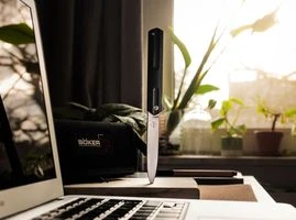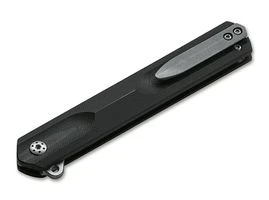 Böker Plus KyotoDas bemerkenswert schlanke Böker Plus Kyoto ist ein modernes, leichtgewichtiges Gentlemanmesser mit dreidimensional gefrästen Griffschalen aus texturiertem G10. Ohne dabei martialisch zu wirken, erinnert die gradlinige, symmetrische Bauform leicht an ein traditionelles Stiletto. Die einseitig geschliffene D2 Klinge mit feinem Hairline-Finish ist mit einem eleganten Hohlschliff versehen. Sie wird kugelgelagert per Flipper geöffnet und von einem Linerlock arretiert. Der aus dem Vollen gefräste dekorative Titan-Clip (Tip-up/r) ist mit einem Stonewash-Finish versehen, integriert sich perfekt in die gefräste Mulde der hinteren Griffschale und trägt so kaum auf. Mit hochwertigem Nylon-Etui zur Aufbewahrung.Technische DatenGesamtlänge: 20 cmKlingenlänge: 8,8 cmKlingenstärke: 2,7 mmGewicht: 61 Gramm100Klingenmaterial: D2Griffmaterial: G10Verschluss: LinerlockÖffnungshilfe: FlipperÖffnungsmechanismus: ManuellKlingenfarbe: UnbeschichtetLumen: Öffnungshilfe: FlipperÖffnungsmechanismus: ManuellKlingenfarbe: Unbeschichtet
