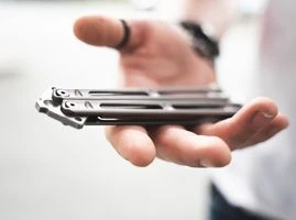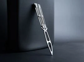 Böker Plus Papillon TrainerDer Böker Plus Papillon Trainer entspricht der Konstruktion des echten Balisong-Messers, ist aber anstelle einer echten Klinge mit einem stumpfen Dummy ausgestattet. Der Trainer ist wie das Original mit skelettierten Edelstahl-Griffhälften bestückt, die mit einem matten Beadblast-Finish versehen sind. Das auch als Butterfly-Messer bekannte Balisong verdankt seinen Namen dem einfachen Faltmechanismus des geteilten Griffs, der deutlich weniger anfällig für Verschmutzungen ist als andere Mechanismen. Die kugelgelagerte Clippoint-Klinge des Trainers wird aus 420 Stahl gefertigt und ist mit einem ebenfalls matten Stonewash-Finish versehen. Der an den Kanten leicht gerundete Dummy ist zur direkten Unterscheidung von scharf geschliffenen Klingen und zur Gewichtsangleichung an das Original mit großzügigen Aussparungen versehen. Die ausgeprägte Fehlschärfe unterstreicht den taktischen Charakter des Trainingsgeräts. Mit hochwertigem Nylon-Etui zur Aufbewahrung.Technische DatenGesamtlänge: 25,2 cmKlingenlänge: 11,4 cmKlingenstärke: 3,7 mmGewicht: 124 GrammKlingenmaterial: 420Griffmaterial: EdelstahlVerschluss: BalisongÖffnungsmechanismus: ManuellFarbe: GrauKlingenfarbe: Grau