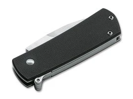 Böker Plus Shamsher G10Darriel Caston und Stan Mojzis haben mit dem Böker Plus Shamsher ein minimalistisches Automatikmesser entworfen, das mit einer Gesamtlänge von knapp 12 Zentimetern sicherlich zu den handlichsten Vertretern seiner Art zählt. Die satinierte Klinge aus D2 wird durch das Betätigen des an einen klassischen Flipper erinnernden Auslösers automatisch per Federkraft geöffnet und von einem Linerlock sicher verriegelt. Die flachen Griffschalen bestehen aus texturiertem G10. Mit kleiner integrierter Fangriemenöse und hochwertigem Nylon-Etui zur Aufbewahrung.Technische DatenGesamtlänge: 12,3 cmKlingenlänge: 5 cmKlingenstärke: 2,9 mmGewicht: 62 Gramm325Klingenmaterial: D2Griffmaterial: G10Designer: Darriel CastonVerschluss: LinerlockÖffnungshilfe: DruckknopfÖffnungsmechanismus: AutomatikKlingenfarbe: UnbeschichtetLumen:Öffnungshilfe: DruckknopfÖffnungsmechanismus: AutomatikKlingenfarbe: Unbeschichtet