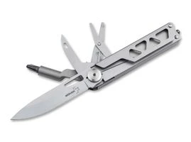 Böker Plus Specialist Half-ToolKompetent, zuverlässig, hosentaschentauglich und damit alles andere als eine halbe Portion – das Böker Plus Specialist Half-Tool erweitert die Serie der beliebten Multifunktionswerkzeuge um eine schlanke Variante. Das Multitool wartet mit einer Hauptklinge aus 3Cr13 auf und erhält Rückendeckung von einer Schere, einem Schraubendreher mit Universal-Bithalter, einer Stechahle und einem Glasbrecher. Der Edelstahlgriff des Mehrzweckwerkzeugs liegt auch bei schwierigen Arbeiten sicher in der Hand.Technische DatenGesamtlänge: 18,7 cmKlingenlänge: 7,9 cmKlingenstärke: 2,2 mmGewicht: 127 GrammKlingenmaterial: 3Cr13Griffmaterial: 2Cr13Verschluss: LinerlockÖffnungshilfe: DaumenöffnungÖffnungsmechanismus: ManuellFarbe: SilberKlingenfarbe: Unbeschichtet