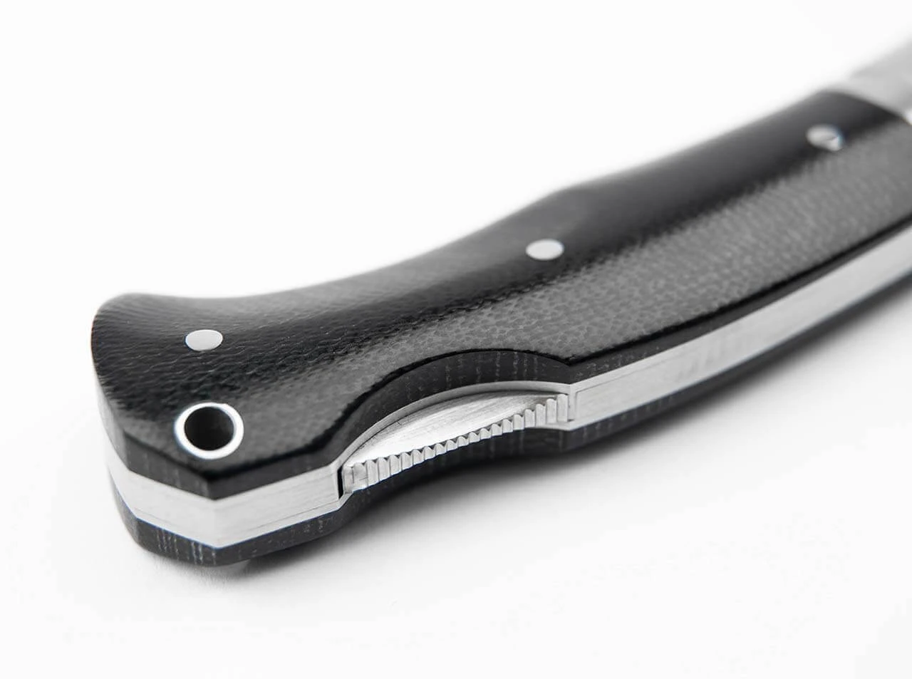 Der klassische Backlock vereint mediterrane Einflüsse bei der Klingenform mit denen eines traditionellen Taschenmessers und stellt so eine reizvolle Kombination dar, die eine einzigartige Ausstrahlung besitzt. Die Klinge wird aus N690 gefertigt und ist mit einem feinen Satin-Finish versehen. Die Edelstahlbacken tragen die für Raphaël Durand typische Nut. Die Beschalung besteht aus griffigem und stabilem Canvas-Micarta, das hier mit einem schönen gebürsteten Finish versehen ist.