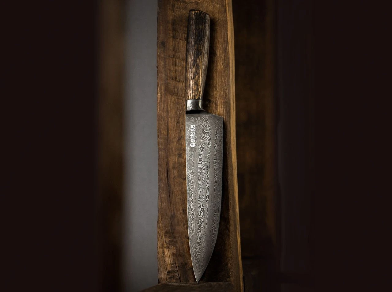 Das Chefmesser, oder auch Kochmesser, zählt zu den wichtigsten Messern in der Küche und gehört zur Grundausstattung. Es hat eine etwas breitere und längere Klinge als das Allzweckmesser. Die schlanke Spitze eignet sich ausgezeichnet dazu Zwiebeln oder kleines Gemüse zu schneiden. Dank seine Länge, kann man es aber auch hervorragend als Fleischmesser benutzen. Auch große Gemüsesorten lassen sich problemlos damit verarbeiten.