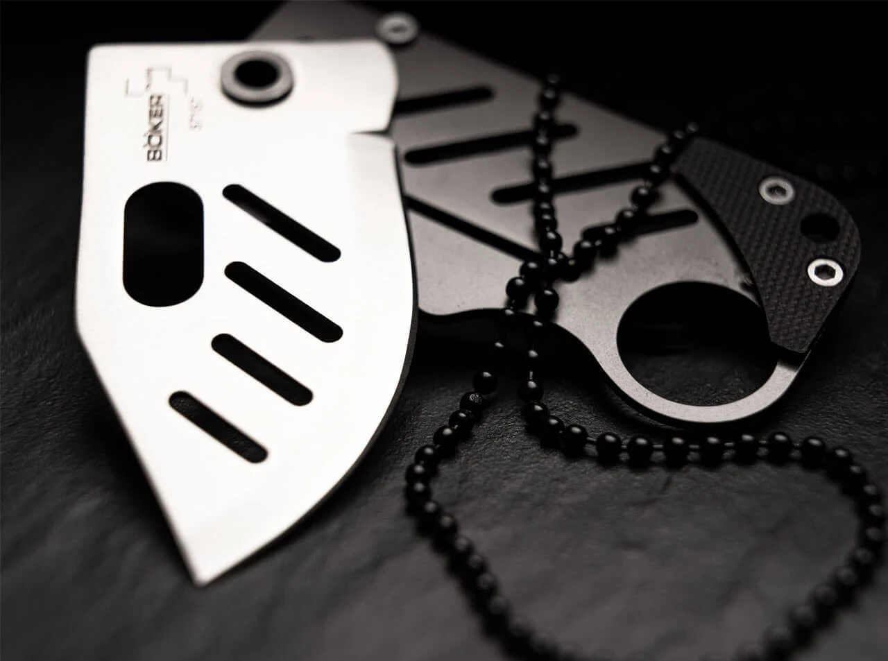Das Böker Plus Credit Card Knife verfolgt einen ungewöhnliches Ansatz. Mit einer Länge von 7,1 Zentimetern, einer Breite von 3,5 Zentimetern und einer Stärke von gerade einmal 3 Millimetern verschwindet das Messer zum Beispiel diskret im Kreditkartenfach der Geldbörse. Alternativ lässt sich dieses extreme Leichtgewicht auch bequem per Clip in der Hemdtasche oder mit der Kugelkette als Neck Knife tragen. Die Platine ist aus Titan gefertigt und bietet mit dem Framelock eine robuste und zuverlässige Verriegelung. Zur Gewichtsreduzierung weisen Platine und Klinge gefräste Schlitze auf. Die Fingermulden und der Griffabschluss aus G10 sorgen trotz der flachen Bauweise für eine gelungene Ergonomie. Das Design von John Kubasek, dem bekannten Messermacher aus Massachusetts, setzt auf eine Klinge aus 440C. Ein außergewöhnlicher Begleiter für Alltag und Freizeit. Mit abnehmbarerem Clip (Tip-down).