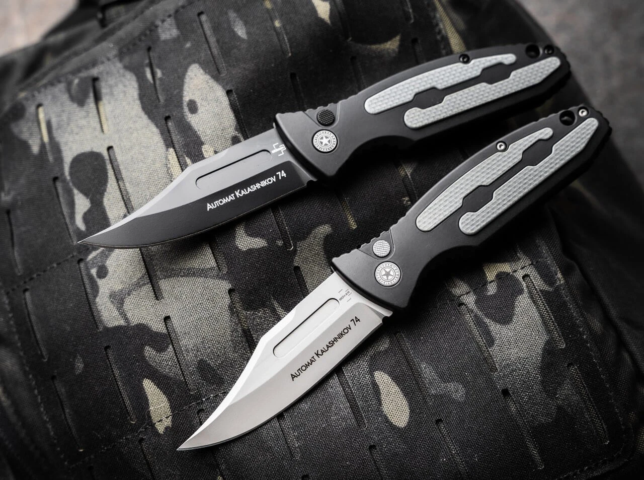 Die Vorgabe bei der Entwicklung des Böker Plus Kalashnikov war es, Designelemente des Sturmgewehrs AK-47 zu integrieren. Als Herstellungsverfahren für den Griff wurde CNC-Fräsen gegenüber der Druckgusstechnik gewählt, um ein Höchstmaß an Präzision zu erzielen. Er wird aus schwarz Hardcoat-anodisiertem 6061-T6 Aluminium gefertigt und ist mit rutschfesten Einlagen aus grauem G10 versehen. Sie weisen dieselbe Kontur auf wie der vordere Handschutz des berühmten Sturmgewehrs. Das auffälligste Wiedererkennungsmerkmal ist die schwarz beschichtete Klinge aus D2, die stilistisch der Bajonettklinge des AK-47 entspricht. Mit Druckknopf, der das Messer sowohl öffnet als auch entriegelt. Mit Clip (Tip-Up).