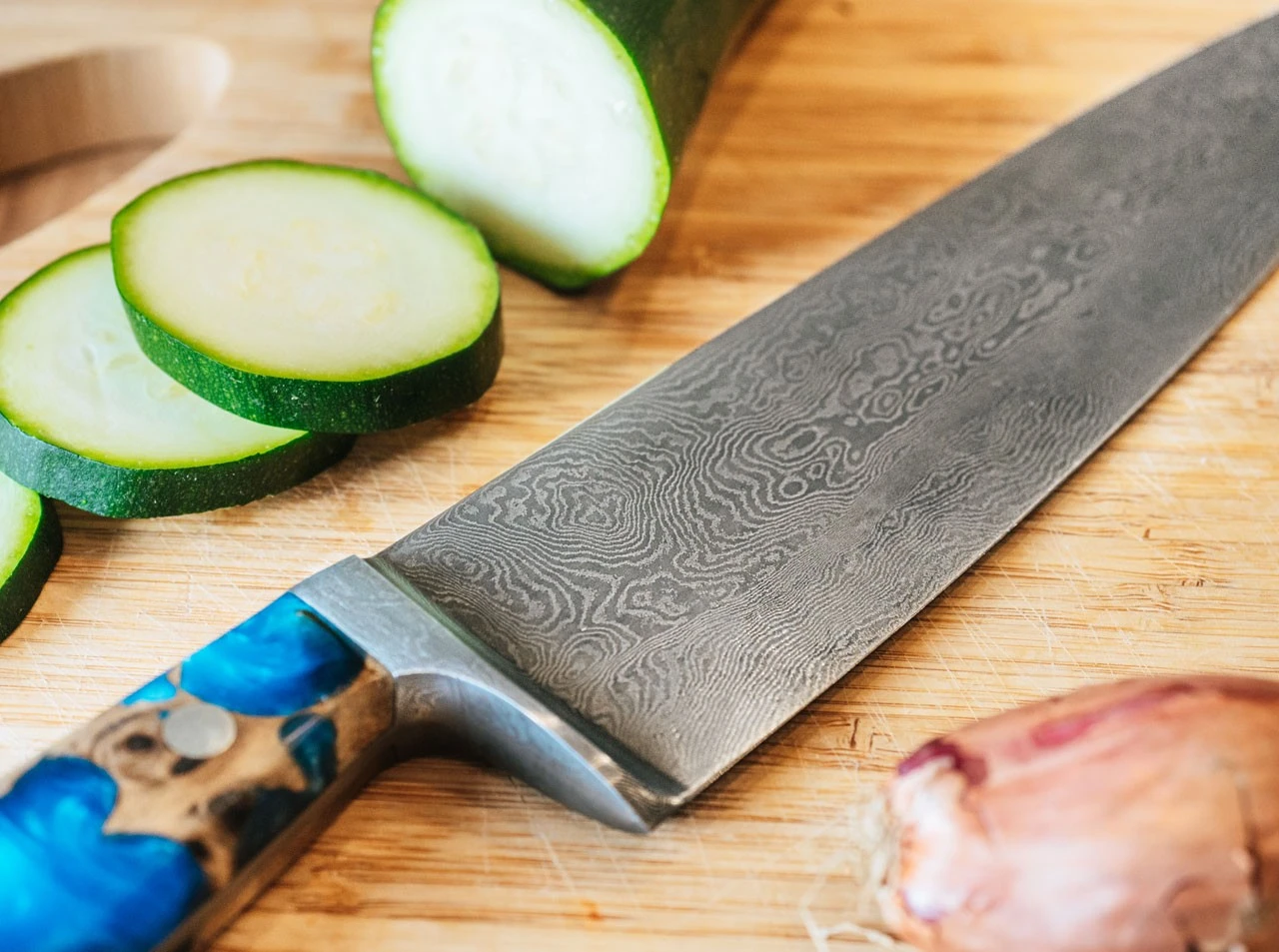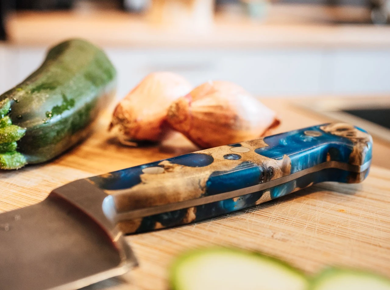 Das Chefmesser, oder auch Kochmesser, zählt zu den wichtigsten Messern in der Küche und gehört zur Grundausstattung. Es hat eine etwas breitere und längere Klinge als das Allzweckmesser. Die schlanke Spitze eignet sich ausgezeichnet dazu Zwiebeln oder kleines Gemüse zu schneiden. Dank seiner Länge kann man es aber auch hervorragend als Fleischmesser benutzen. Auch große Gemüsesorten lassen sich problemlos damit verarbeiten.