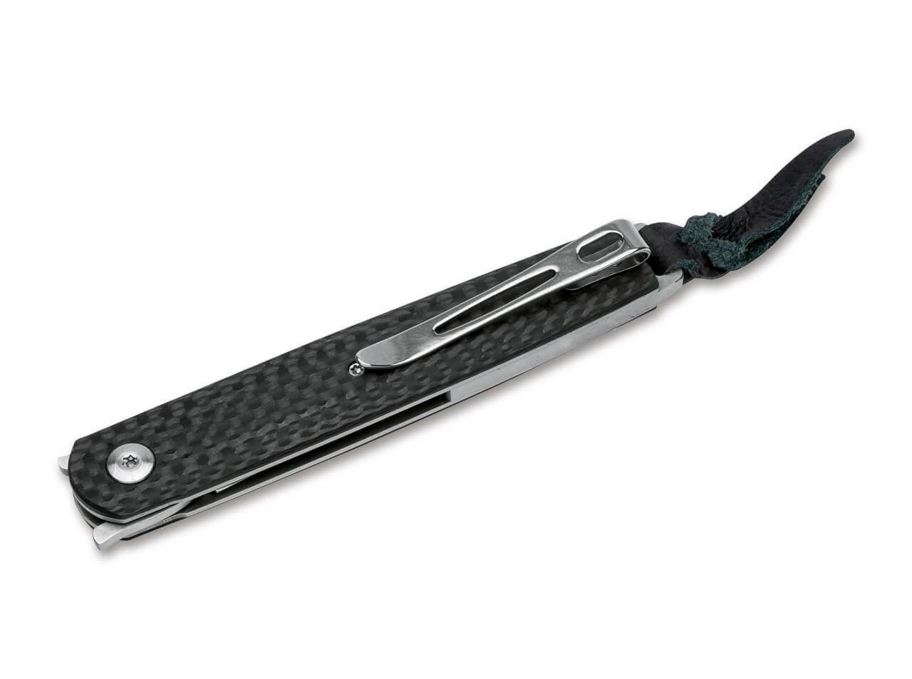 Die schlanke Bauweise basiert auf Edelstahlplatinen, die den Linerlock beherbergen. Die große Fangriemenöse und der Clip (Tip-up/r) ermöglichen ein komfortables Tragen des Leichtgewichtes. Die Klinge aus VG-10 besitzt eine überaus feine Längssatinierung, die perfekt mit den Griffschalen aus Kohlefaser harmoniert. Mit hochwertigem Nylon-Etui zur Aufbewahrung.