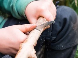 Magnum Classic Hunter Slim KidsDas Magnum Classic Hunter Slim Kids überzeugt als sicheres Kindermesser mit einer satinierten Clippoint-Klinge aus 440A und vervollständigt die Ausrüstung jedes jungen Pfadfinders und jeder Nachwuchs-Abenteurerin. Das explizit für Kinderhände konzipierte Taschenmesser ist deutlich kleiner als das ursprüngliche Magnum Classic Hunter Slim und verfügt aus Sicherheitsgründen über eine abgerundete Spitze. Sowohl die Hauptklinge als auch die vielseitige Säge werden per Nagelhau geöffnet und einzeln von einem stabilen Backlock arretiert, sodass ein unbeabsichtigtes Einklappen verhindert wird. Die konturierten Griffschalen werden aus mediterranem Olivenholz gefertigt und liegen angenehm in der Hand. Mit praktischer Fangriemenöse.Technische DatenGesamtlänge: 14,9 cmKlingenlänge: 6,5 cmKlingenstärke: 2,5 mmGewicht: 99 GrammKlingenmaterial: 440AGriffmaterial: OlivenholzVerschluss: BacklockÖffnungshilfe: NagelhauÖffnungsmechanismus: ManuellFarbe: BraunKlingenfarbe: Unbeschichtet