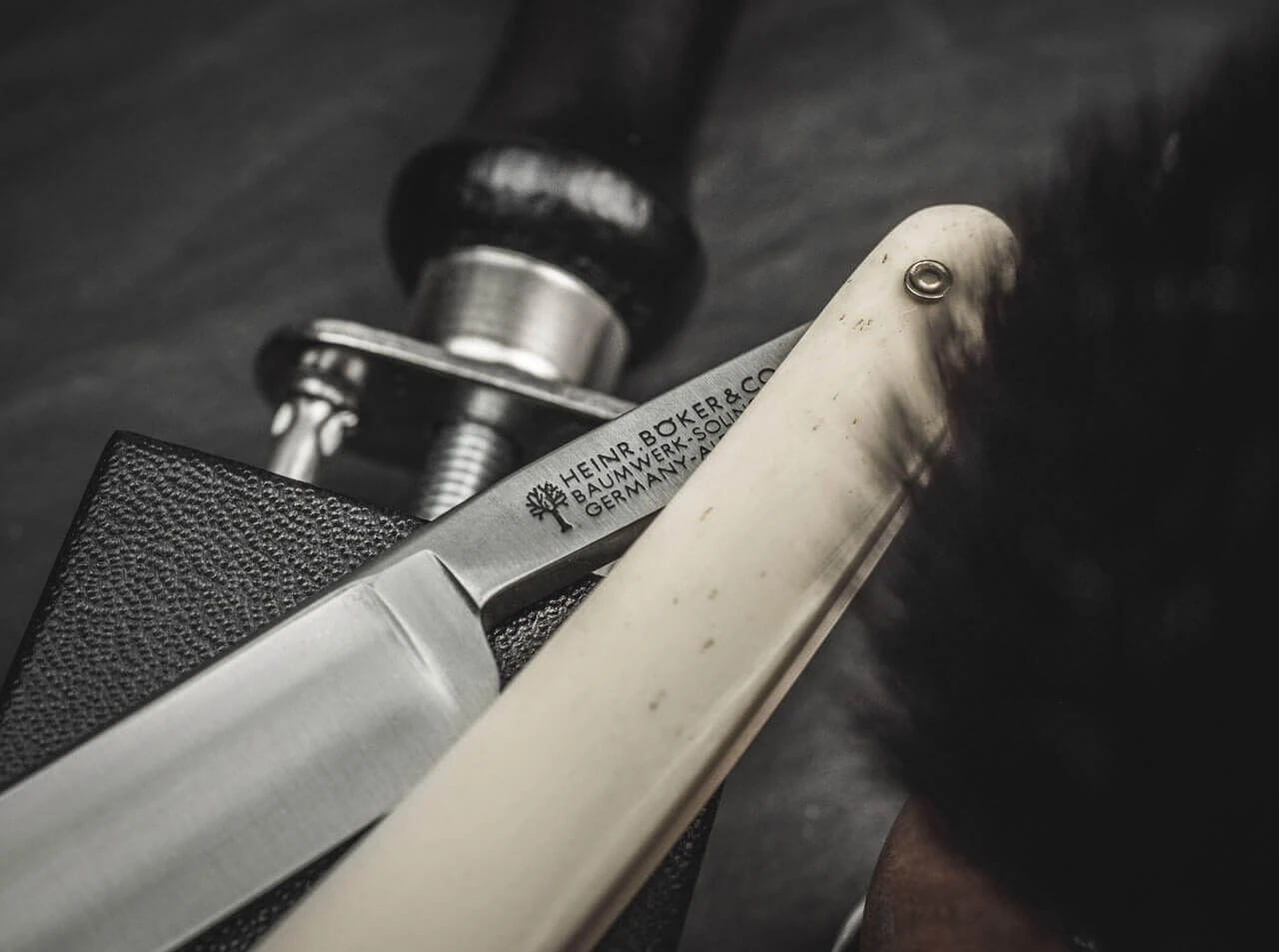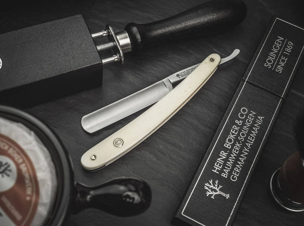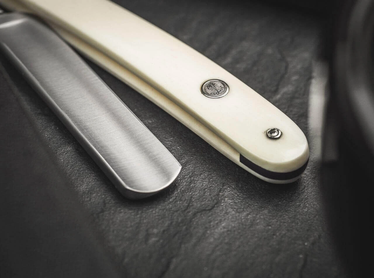 Das außergewöhnliche und streng limitierte Böker Polaris LTD mit Spanischem Kopf in der Größe 4/8 Zoll überzeugt vor allem bei der Rasur der Konturlinien. Die Klinge besteht aus klassischem, nicht rostfreien Kohlenstoffstahl der besonders schnitthaltig ist und wegen seines extrem feinen Gefüges nach wie vor die erste Wahl für hochwertige Rasiermesser ist. Neben der Klinge begeistert auch das griffige Heft aus echtem Knochen, das einen stimmigen Kontrast zum schwarzen Zwischenstück bildet. Mit authentischem Böker Stempel im Klingengang, Echtheitszertifikat und historischer Verpackung. Handgefertigt in der Böker Messer-Manufaktur Solingen.