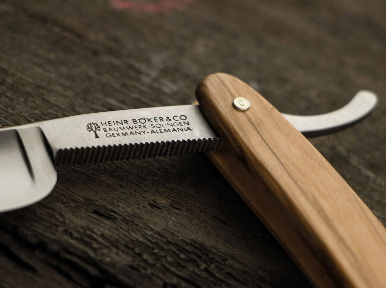 Wiederauflage der berühmtesten Modelle in der langen Geschichte der Böker Rasiermesser. Bereits im Produktkatalog von Boker USA aus dem Jahr 1906 wurden besonders hochwertige Modelle mit diesem traditionsreichen Schriftzug ausgezeichnet. Auch bei den neu konzipierten Modellen mit Heften aus Edelhölzern werden die beliebten 5/8 Zoll breiten Klingen aus Kohlenstoffstahl aufwendig gefertigt und verziert . Die Klinge wird extrahohl mit Wall geschliffen. Inklusive Echtheitszertifikat und historischer Verpackung.
