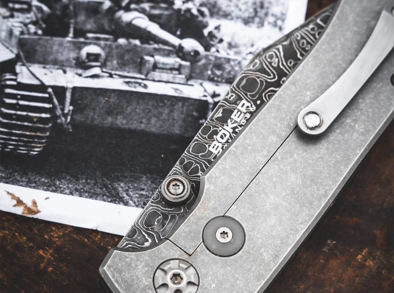 Das eindrucksvolle Böker Tiger-Damast erweitert unsere Serie geschichtsträchtiger Taschenmesser um ein ganz besonderes Modell. Das Sammlermesser mit historischer Vergangenheit ist ein echtes Stück lebende Geschichte und verbindet hochwertige Handwerkskunst mit authentischen Materialien. Der weltweit als Tiger bekannte Panzerkampfwagen VI wurde von der Wehrmacht ab dem Spätsommer 1942 eingesetzt und gilt trotz seiner bescheidenen Produktionszahl von nur 1350 Exemplaren und der damit einhergehenden geringen strategischen Bedeutung als einer der bekanntesten Panzer der Geschichte. Die Entwicklung des schweren Panzers lässt sich bis in das Jahr 1937 zurückverfolgen, die Serienfertigung begann im August 1942. Heute existieren nur noch sieben erhaltene Exemplare, die auf der ganzen Welt verstreut ausgestellt sind. Aufgrund der geringen Verfügbarkeit wurde der sogenannte Frankentiger zu diesem Zweck sogar aus Wrackteilen verschiedener Fertigungsjahre zusammengesetzt.