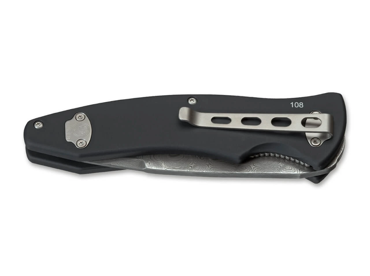 Der Griff aus hochfestem Aluminium AlMgSi1 (durch den Silizium-Anteil deutlich hochwertiger als das gewöhnliche AlMg3) ist hardcoat-anodisiert und lässt das Messer sicher und satt in der Hand liegen. Der umsetzbare Clip (Tip-up/Tip-down) ermöglicht das Tragen in der gewünschten Position. Als Material für die Griffeinlage haben wir heimisches Walnussholz gewählt, das aufgrund seiner überragenden Eigenschaften schon als Verwendung von Schaftholz bei Langwaffen eine lange Tradition hat. Inklusive original Tirpitz Wappen. Dieses Messer vereint auf einzigartige Weise Geschichte, Tradition und moderne Technik, vollständig von Hand gefertigt in der Böker Manufaktur in Solingen. Die Lieferung erfolgt in einer hochwertigen transparenten Rahmenschatulle mit Zertifikat und Seriennummer.