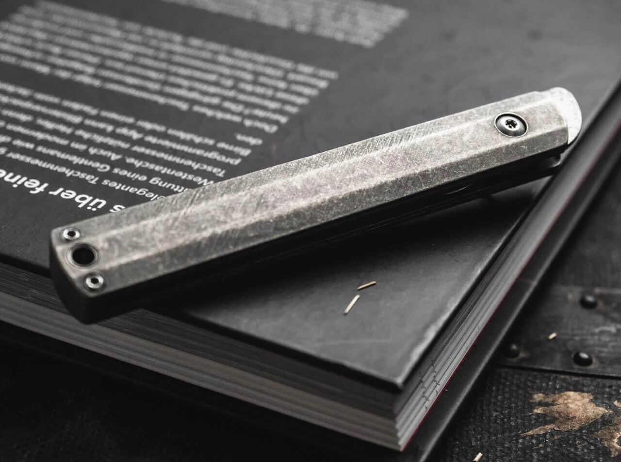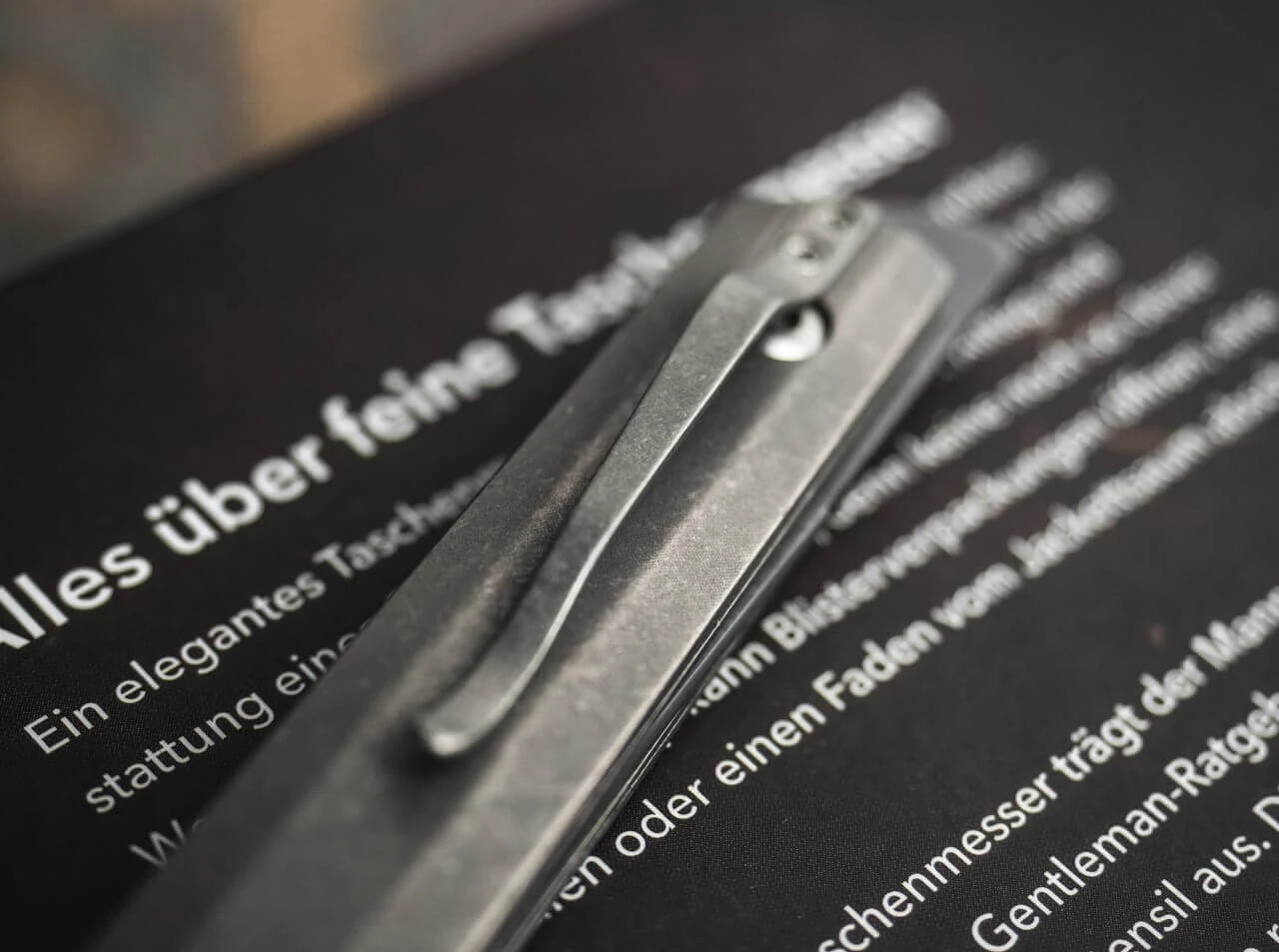 Die gekonnte Kombination japanischer Stilelemente mit den Merkmalen eines modernen Gentleman-Taschenmessers wird bei dieser besonders edlen Sammlerversion des Böker Plus Wasabi noch einmal intensiviert. Der japanische Messermacher Kansei Matsuno ist ein Meister seines Faches, dessen Entwürfe zweifellos einen ganz eigenen Stil haben. Die schlanke Bauweise und leichtgewichtige Konstruktion des Böker Plus Wasabi ergeben zusammen mit dem geradlinigen Design und der klassisch-japanischen Klinge ein überaus elegantes Messer für den Alltag oder die Vitrine. Die kugelgelagerte Klinge aus rostfreiem Damast besteht aus 110 Lagen, öffnet per Frontflipper und wird als Slipjoint beidseitig von einem Detent-Ball unterstützt. Die Griffschalen werden aus hochfestem Titan gefertigt und sitzen auf Titanplatinen, die mit gewichtsreduzierenden Aussparungen versehen sind. Mit verstärkter Fangriemenöse, demontierbarem Titan–Clip (Tip-down/r) und hochwertigem Nylon-Etui zur Aufbewahrung.